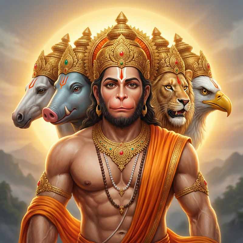 - वानर मुख (पूर्व): "पहला मुख पूर्व दिशा में" - यह मुख शत्रुओं पर विजय और पापों के नाश के लिए है।