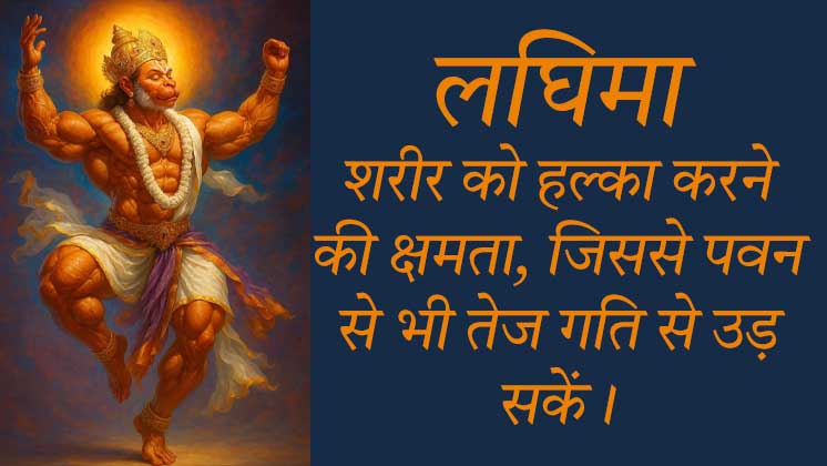 जब लक्ष्मण जी मूर्छित हुए, तो हनुमान जी को हिमालय से संजीवनी बूटी लानी थी। इतनी लंबी दूरी उन्होंने पलक झपकते ही तय कर ली। यह लघिमा सिद्धि ही थी जिसने उनके शरीर को इतना हल्का बना दिया कि वे वायु के वेग से भी तेज उड़ सके।