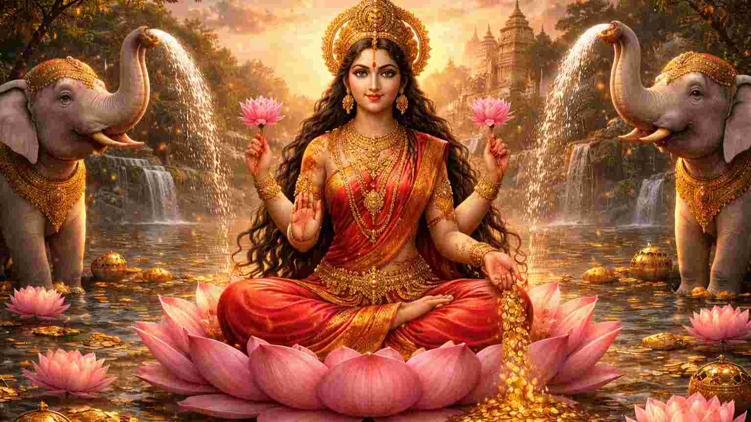 उन्हें 'श्री' (Shree) भी कहा जाता है। उनके चार हाथी (Gaja) अपनी सूंड से उन पर अमृत कलशों से अभिषेक कर रहे हैं। यह 'राजयोग' और 'स्थिर लक्ष्मी' का प्रतीक है।