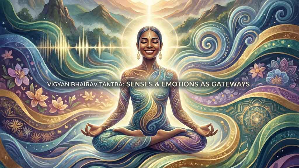 विज्ञान भैरव तंत्र (Vigyan Bhairav Tantra) की हमारी यात्रा में, हम श्वास (भाग 1) और सूक्ष्म ऊर्जा केंद्रों (भाग 2) से होते हुए अब जीवन के सबसे जीवंत और प्रत्यक्ष अनुभवों के क्षेत्र में प्रवेश कर रहे हैं: हमारी इंद्रियां (Senses) और हमारी भावनाएं (Emotions).
