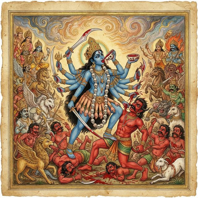 रक्तबीज 'काम' (Desire) और 'संस्कारों' (Deep-rooted habits) का प्रतीक है।