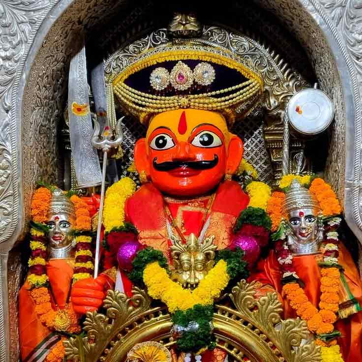 - योद्धा स्वरूप (Warrior Form): "खंडामंडित दंडित दानव अवलीळा" - खंडोबांच्या हातात खंडा (तलवार) आहे आणि ते राक्षसांना सहज शिक्षा करतात. ते घोड्यावर स्वार आहेत ("हयवाहन") आणि पाच मुखांचे ("पंचानन") आहेत.