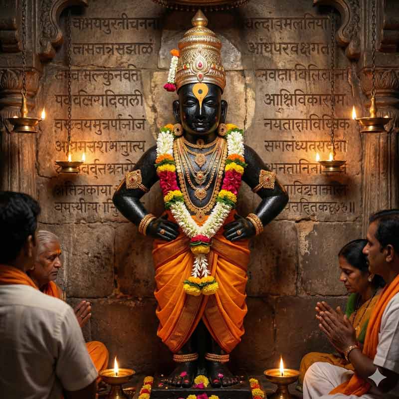 - करुणा और इच्छा पूर्ति (Compassion and Fulfillment): "करुणामयमूर्ते... सर्वेप्सितपूर्तेः" - भगवान विठ्ठल साक्षात करुणा की मूर्ति हैं और अपने भक्तों की सभी मनोकामनाएं पूर्ण करने वाले हैं.
