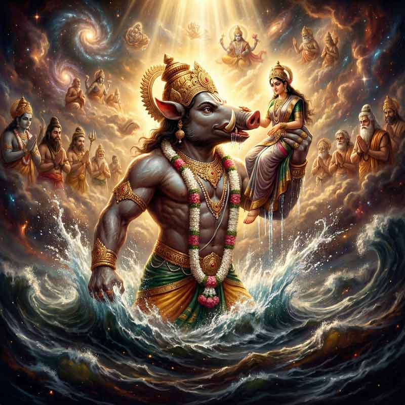 शत्रुओं और नकारात्मक शक्तियों का नाश (Destruction of Enemies and Negative Forces): भगवान वराह ने हिरण्याक्ष जैसे शक्तिशाली असुर का वध किया था। उनका उग्र स्वरूप भक्तों के शत्रुओं और जीवन में आने वाली नकारात्मक शक्तियों (negative forces) का नाश करता है और उन्हें निर्भय बनाता है।