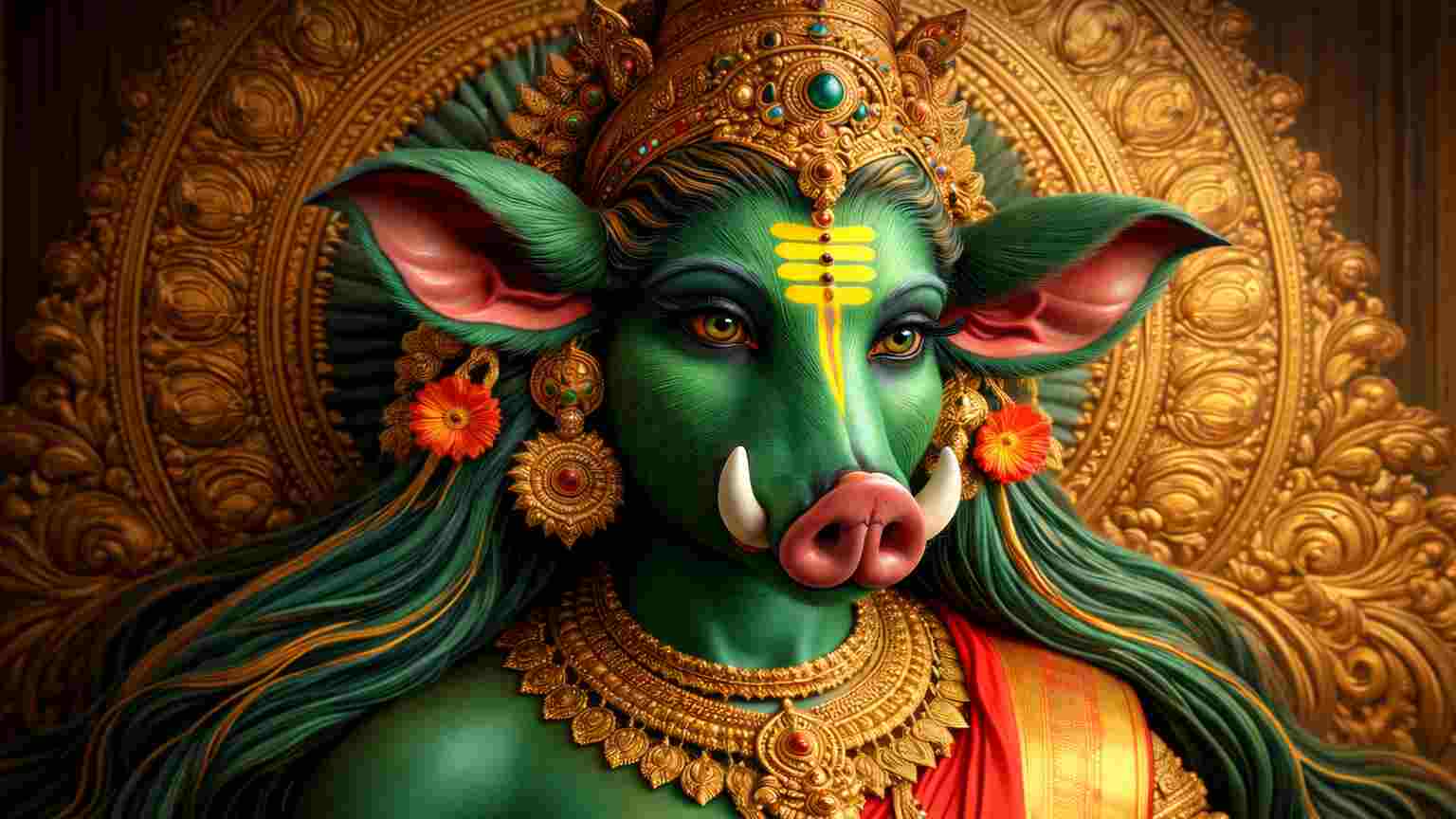 'सप्तमातृकाओं' में प्रमुख, देवी वाराही का मुख वराह (wild boar) का है, जो उनकी 'अजेयता' और 'भूमि तत्व' पर पकड़ को दर्शाता है।