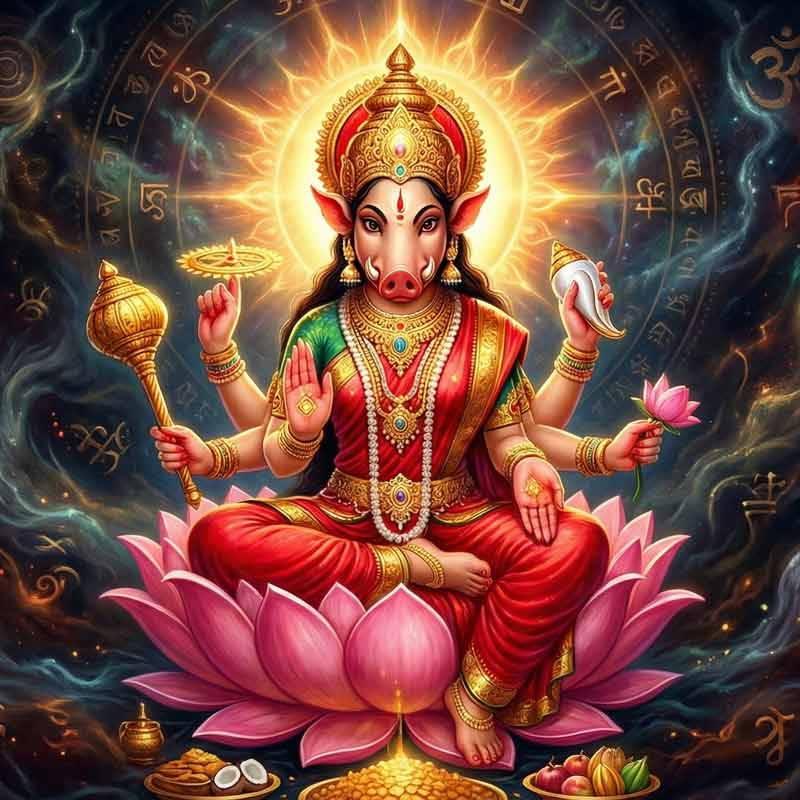 श्री वाराही सहस्रनामम् (Sri Varahi Sahasranamam), देवी वाराही के एक हजार पवित्र नामों का एक अत्यंत गोपनीय और शक्तिशाली स्तोत्र है। देवी वाराही (Goddess Varahi) सप्तमातृकाओं में से एक प्रमुख देवी हैं और भगवान विष्णु के वराह अवतार (Varaha Avatar) की शक्ति स्वरूपा हैं। वराह के समान मुख होने के कारण इन्हें 'वाराही' कहा जाता है। तंत्र शास्त्र में इनका स्थान बहुत ऊंचा है और ये देवी ललिता त्रिपुरसुंदरी की प्रमुख सेनानायिका हैं। यह सहस्रनाम केवल नामों का संग्रह नहीं, बल्कि एक शक्तिशाली मंत्र कोष है, जिसका प्रत्येक नाम देवी के एक विशिष्ट स्वरूप, गुण और शक्ति को जाग्रत करता है। इसकी साधना भक्तों को अभूतपूर्व सुरक्षा, शत्रुओं पर विजय और सभी प्रकार की भौतिक एवं आध्यात्मिक समृद्धि (prosperity) प्रदान करती है।